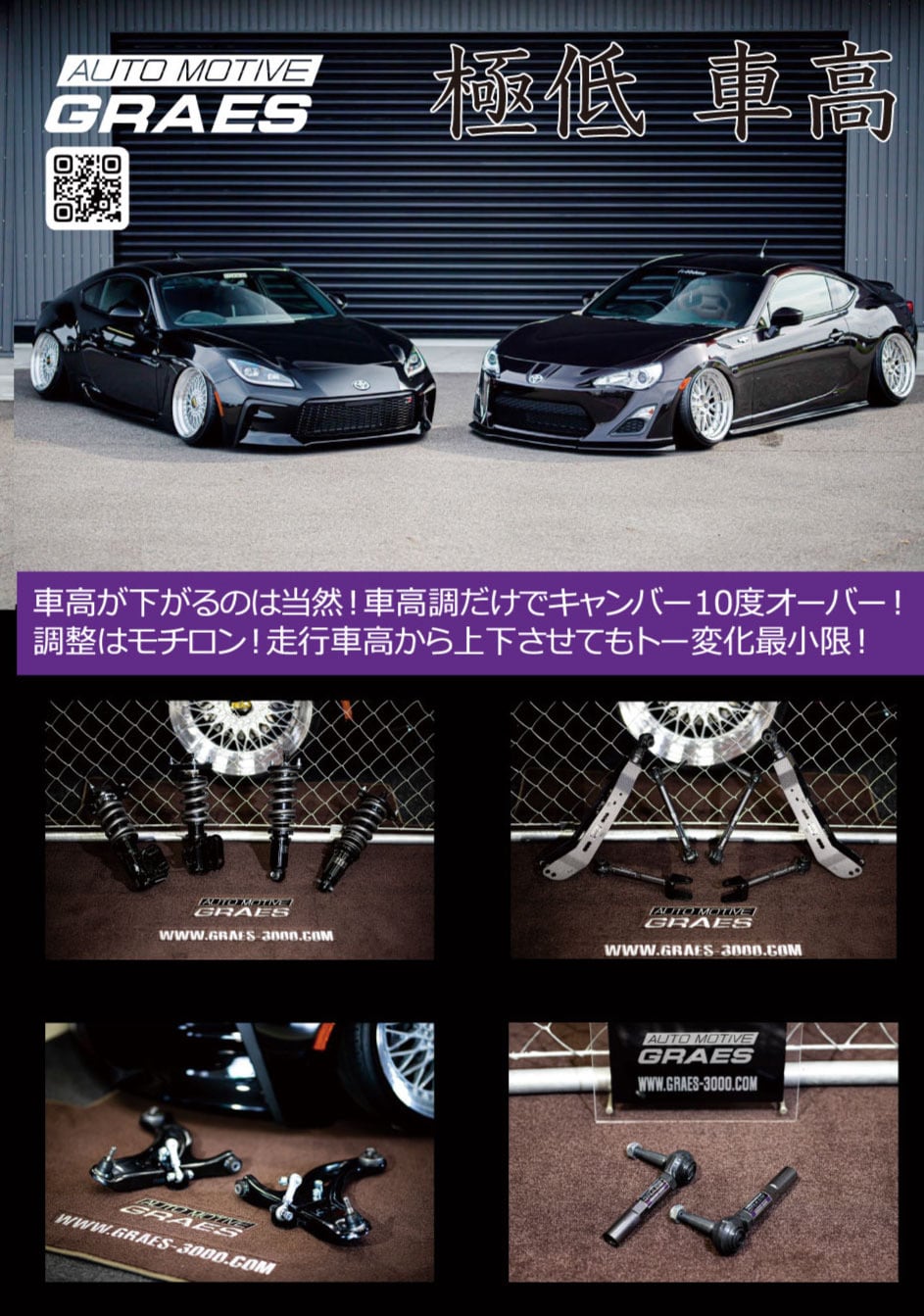ロールセンターボールジョイントや社外調整式ロアアームと併用すると最大限に効果を発揮します。